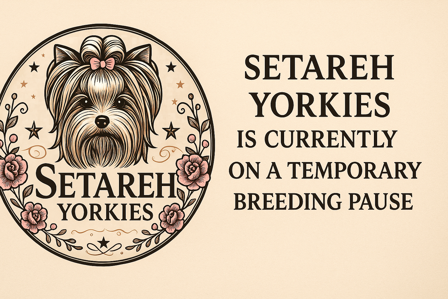 ![]() ![]() A Gentle Pause, Same Heart for Yorkies Setareh Yorkies is currently on a temporary breeding pause as our family and “zoo” navigate a season of healing, change, and regrouping. While we don’t have litters planned right now, our love for Yorkshire Terriers — and commitment to education, ethical breeding, and everyday Yorkie care — hasn’t gone anywhere. Looking for your next tiny best friend? You’re in the right place. At Setareh Yorkies, we raise cherished, healthy, well-socialized Yorkshire Terriers—both traditional and parti-colored—right here in our home. We’re not just breeders. We’re passionate puppy matchmakers, here to help you find the Yorkie that fits your heart and home. ⸻ 🌸 What Makes Us Different: ✅ Raised with love using Puppy Culture, Badass Breeder Methods, and Early Neurological Stimulation ✅ Focused on temperament, health, and personality—not just looks ✅ In-home raised with our daughter, cats, and even hedgehogs 🦔 ✅ 20+ years of experience, and a whole lot of heart 💕 ⸻ 📋 Ready to Adopt? **Setareh Yorkies is currently on a breeding pause** We use a 11-step Puppy Adoption Process to help guide you through each stage. ➡️ Start by submitting your Puppy Application here. ➡️ Learn how our puppy selection process works here. ➡️ Find out why we no longer use a waitlist here. ⸻ 🏡 Puppy Prep Support From homecoming tips to training tools and what to expect in the first year, we provide every family with our detailed Puppy Package to make the transition smooth. ➡️ See Puppy Prep Tips ⸻ 🐶 Wellness is Our Foundation ![]() We proudly use pawTree nutrition with all our puppies and adult dogs—because what you feed matters. ✨ No tummy troubles. ✨ Easier weaning. ✨ Healthier coats. ✨ Happy, thriving pups. ➡️ See why we love pawTree ➡️ Request a free nutrition assessment 💬 Let’s Chat! We’d love to meet you and talk more about your future puppy! 📞 Call/Text: 385-414-5938 📧 Or contact us here Follow us on Instagram @Setarehyorkies ![]() ⸻ 🐾 Let the tail-wagging journey begin. We are excited to partner with Brilliant Pad! Our puppies will now be potty pad trained using their system. Read more about it here: |